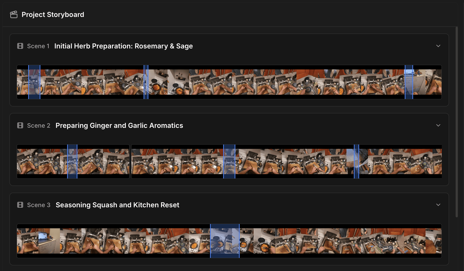 Similar to a recipe, our AI can detect the storyline of a Vlog and cut it down for you.