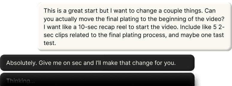 Streamline editing as our AI understands plating, taste tastes, and spoken reviews.