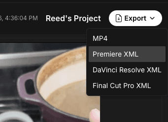Click the "Export" button in the top right corner and select the XML format that matches your editing software:
