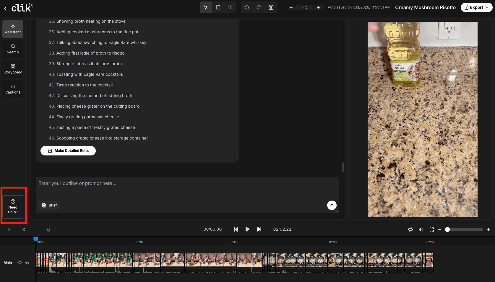 Clik offers multiple ways to get help, whether you need quick answers to common questions or personalized support from the team. The help system is built right into the editor so you can find solutions without leaving your project.
