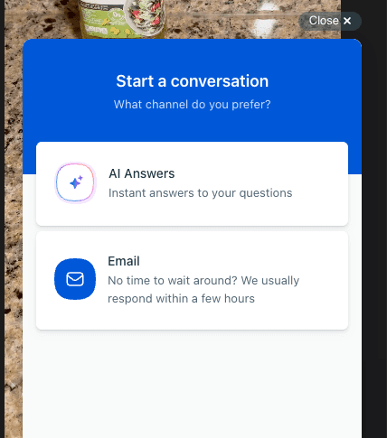 When you choose Contact Support, you'll see two ways to reach the team: