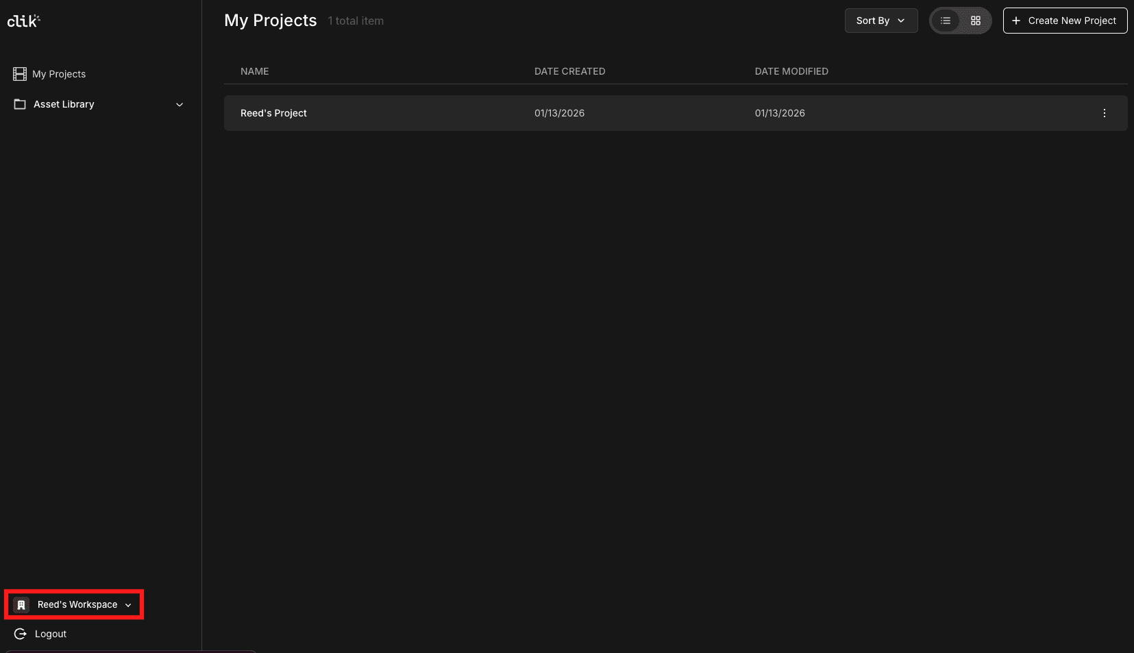 Every Clik account includes a workspace (also called an organization). All projects you create are stored within your workspace, and anyone you invite to your workspace can access these projects.