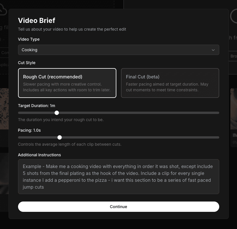 The more detail you provide, the better the AI can understand your vision. Think of it like briefing a human editor—what would you want them to know about your video?