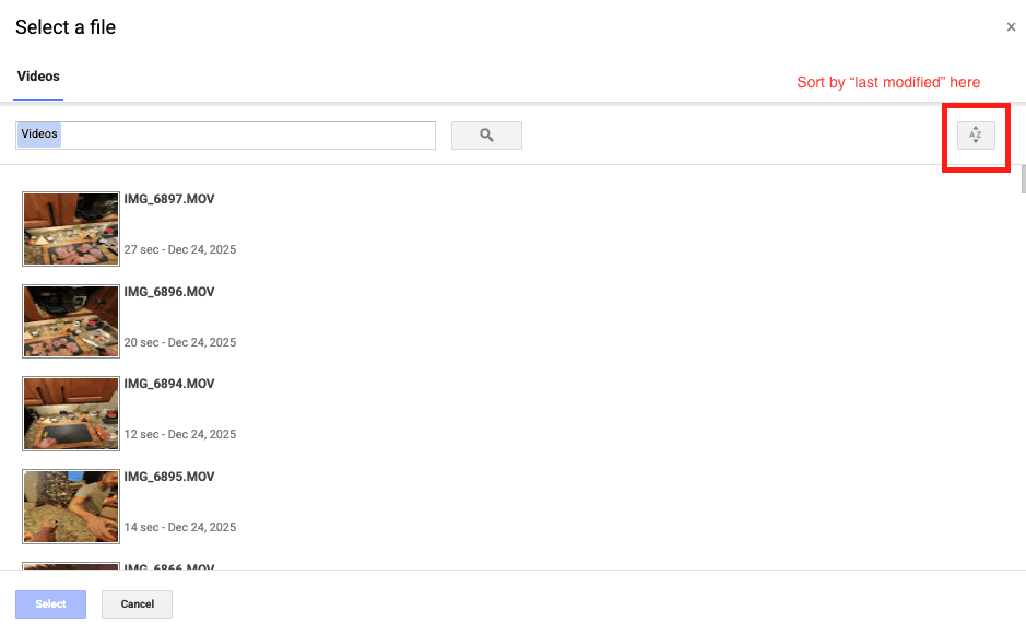 For Google Drive, it’s crucial your files are hosted in the main “My Drive” folder, and not in a sub folder. When you see this pop-up, you’ll see all the files in your main drive. Google Drive doesn’t allow us to modify this.